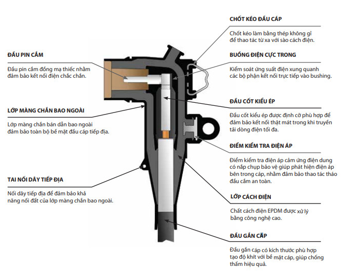 THÀNH PHẦN CẤU TẠO - BỘ ĐẦU CÁP CẮM GÓC KHUỶU ELBOW