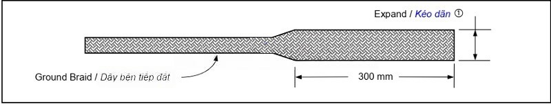 Bước 1: Kéo dãn theo bề ngang dây đồng bện tiếp địa một đoạn dài 300 mm (1)