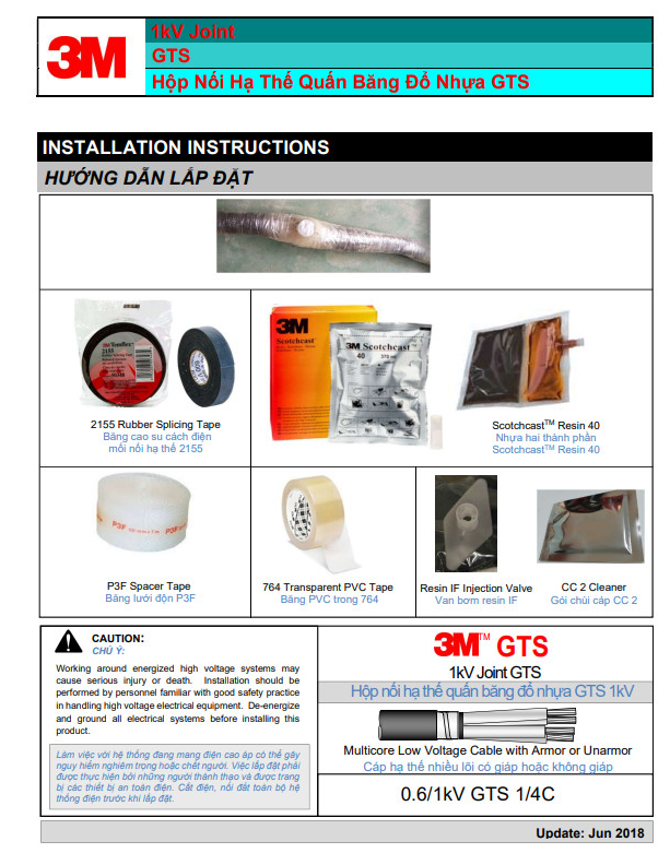 Hộp nối cáp hạ thế quấn băng đổ Resin GTS 3M - Sản phẩm được nhập trực tiếp từ hãng 3M đóng gói ở Việt Nam.